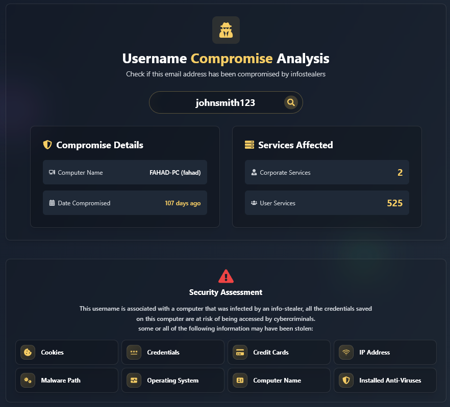- Review the Results: The tool will scan its database of infostealer data and inform you if any compromises are detected.